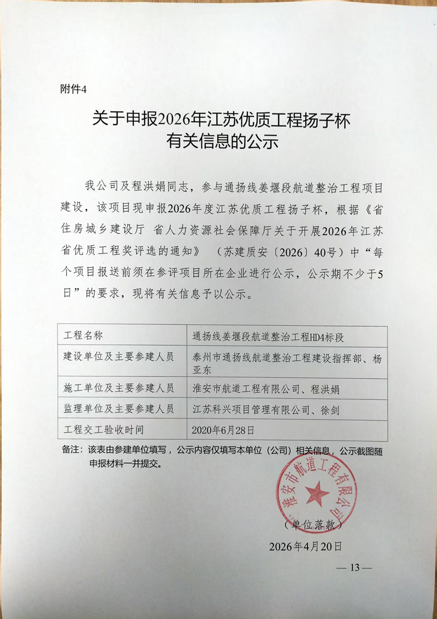 淮安市航道工程有限公司成立于八十年代初,前身為淮安市航道工程隊,主要從事航道整治、港口碼頭建設(shè)、疏浚與吹填工程、航道養(yǎng)護、水上起重安裝、沉船沉物打撈、航標架設(shè)、船閘水下檢查維護、及公路與市政等多項交通工程業(yè)務(wù)……